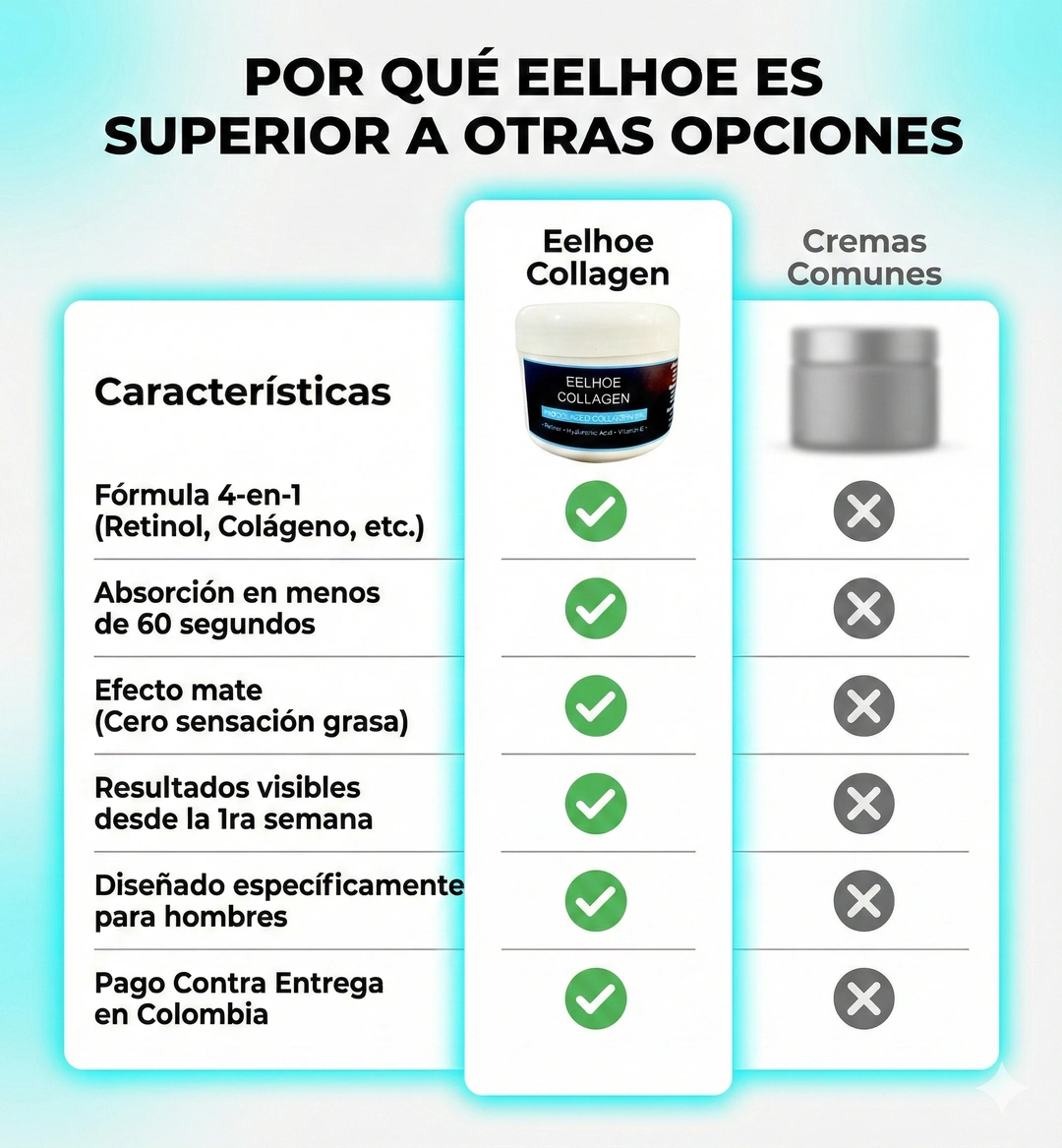 Eelhoe Collagen es una crema facial masculina formulada con colágeno hidrolizado al 5%, retinol, ácido hialurónico y vitamina E.